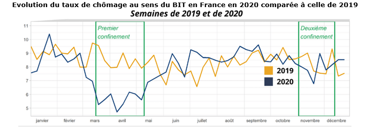Document 7. Un choc macroéconomique négatif ne se traduit pas forcément dans les chiffres du chômage : l’exemple des confinements en France en 2020