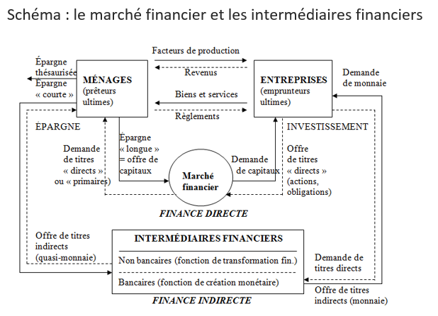 12) le capitalisme nécessite deux grands modes d’allocation des ressources. Selon les propos de Gurley et Shaw, il est nécessaire de mettre en place un financement direct qui permet aux entreprises de se financer directement auprès des ménages qui souscrivent à l’achat d’actions ou d’obligations. Toutefois, il ne peut y avoir de capitalisme et d’investissement sans la contribution des banques qui collectent l’épargne, la transforment (les dépôts se font à court et moyen terme tandis que les prêts sont accordés à moyen et long terme) et la prêtent aux agents à besoin de financement, les entreprises.