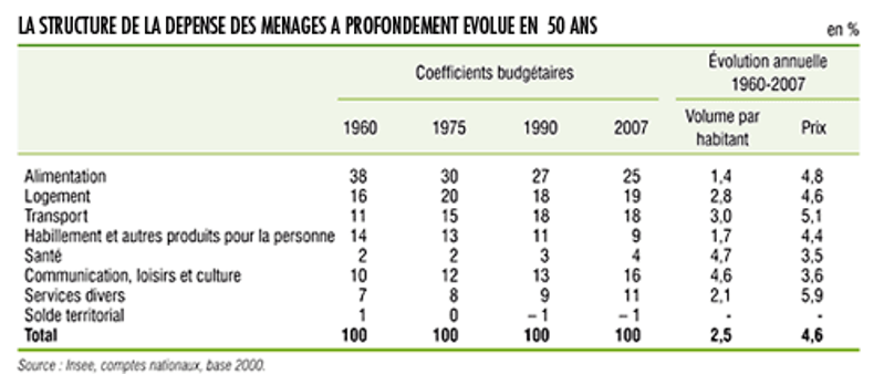 16) Qu’elle a été l’évolution de la structure de la consommation des ménages en France entre 1960 et 2007 ?