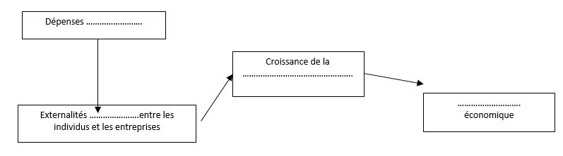 3) Placer les mots suivants dans le schéma : Positives ; Croissance, Productivité du travail ; Éducation