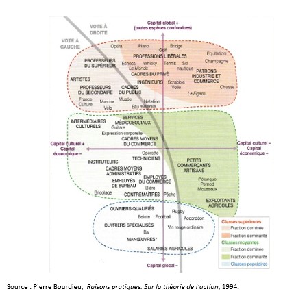 La mise en évidence de cette structure des capitaux permet donc de distinguer des fractions de classe parmi les classes supérieures (on distingue ainsi la fraction dominante des classes supérieures caractérisée par une prédominance du capital économique et la fraction dominée des classes supérieures davantage dotée en capital culturel) et parmi les classes moyennes (la fraction dominante des classes moyennes mieux dotée en capital économique qu’en capital culturel et la fraction dominée des classes moyennes mieux dotée en capital culturel qu’en capital économique).