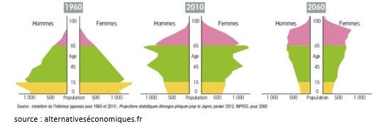 3) A partir de l’exemple du Japon, analysez l’impact de la transition démographique sur l’allure de la pyramide des âges.