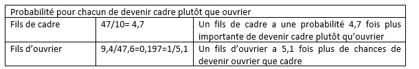 A partir de ces données, on peut calculer la probabilité pour chacun de devenir cadre plutôt que ouvrier