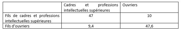 Destinées des fils de cadres et d’ouvriers en 2014-2015 :