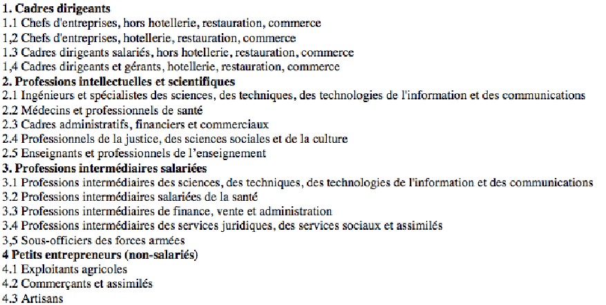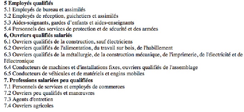 Il faut retenir les six groupes socioprofessionnels d’actifs (dans l’ordre) :