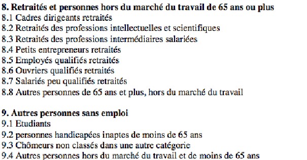 Les 42 CSP ont enfin été ramenées à une liste de huit groupes socioprofessionnels repérés par un code à un chiffre.