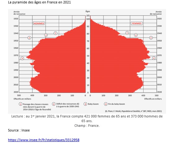 La pyramide des âges est apparue en 1874, c’est un document graphique qui permet de visualiser assez rapidement la structure par âge et par sexe d’une population.