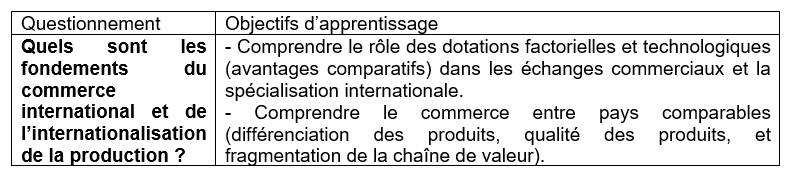 Les théories traditionnelles du commerce international chaque pays doit se spécialiser dans la production pour laquelle il possède la meilleure dotation en facteurs de production, à savoir le capital, le travail, ou encore les ressources naturelles. Les échanges internationaux s’expliquent donc par la différence entre les pays.