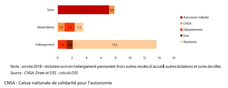 La dégradation progressive des conditions de travail dans les EHPAD, et la dégradation des conditions de vie des personnes âgées qui les fréquentent est une réalité incontestable (voir les rapports parlementaires dont on trouvera les références plus bas, ainsi que le projet de loi « Grand âge et autonomie » de 2021), et est avant tout lié à leur financement. Celui-ci, régulé par les Agences régionales de santé (ARS) et les Conseils départementaux, repose sur trois volets : le volet « soin » (personnel soignant, matériel médical…), pris en charge par l’Assurance maladie, le volet « dépendance » (aide à la vie quotidienne, agents de service…) géré par les Départements via l’Aide personnalisée à l’autonomie (APA), et le « tarif hébergement », qui comprend l’hôtellerie, les animations, la restauration, à la charge des résidents et de leurs familles.