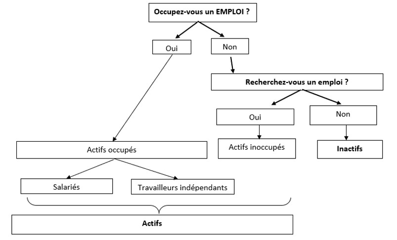 Objectifs : Définir et illustrer les notions d’actifs, actifs occupés, actifs inoccupés, inactifs, salarié, travailleur indépendant.