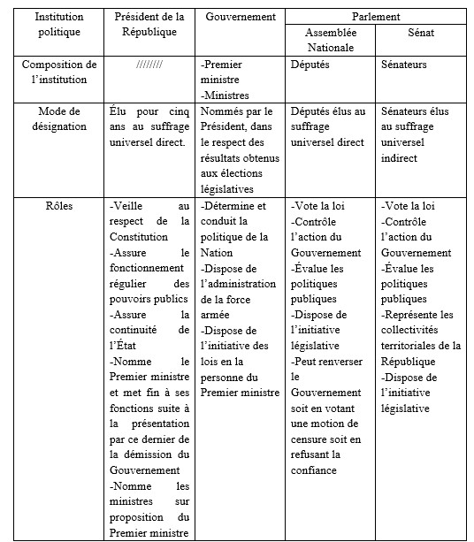 Etape 2 : Mettre en évidence les principales caractéristiques de la Cinquième République française