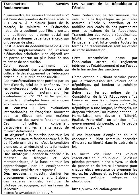 L’école transmet aussi des valeurs. Transmission des valeurs républicaines, laïcité, citoyenneté, culture de l’engagement et lutte contre toutes les formes de discrimination sont au centre de cette mobilisation.