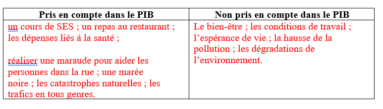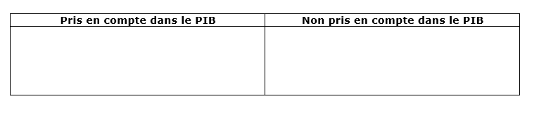 2) Quels sont les éléments non pris en compte dans le PIB ?
