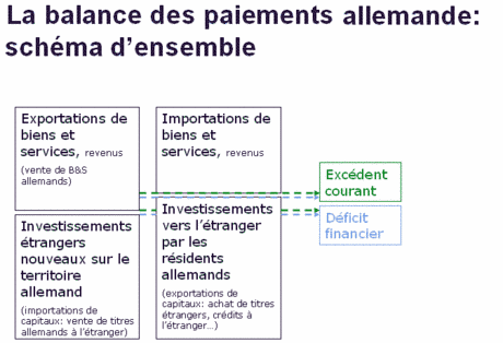 L’économie allemande présente ainsi structurellement des excédents courants à placer à l’étranger. Une des raisons de l’exposition particulière de l’Allemagne à la crise des subprimes a d’ailleurs été la conversion de ces excédents en produits financiers hasardeux. Les « Landesbanken », banques régionales, atout traditionnel de poids dans le système de financement allemand, ont notamment été particulièrement fragilisées par la crise.