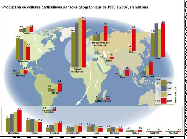 Source : Comité des Constructeurs Français d’Automobiles tiré de Guillaume DUVAL, « Automobile, une crise structurelle », Alternatives économiques, n° 279, avril 2009. |