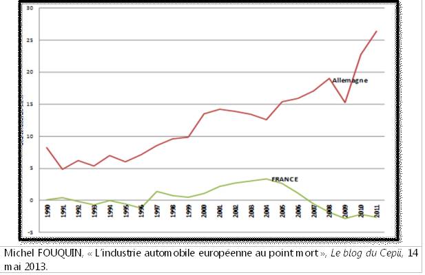 2. Michel FOUQUIN, « L’industrie automobile européenne au point mort », Le blog du Cepii, 14 mai 2013.