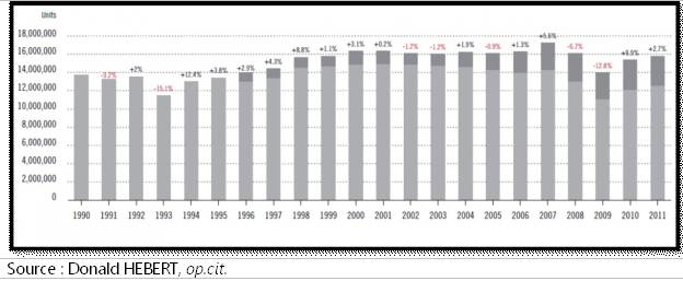 Source : Donald HEBERT, « 10 graphiques pour comprendre la crise de l’automobile », Le Nouvel Observateur, 16 janvier 2013. |