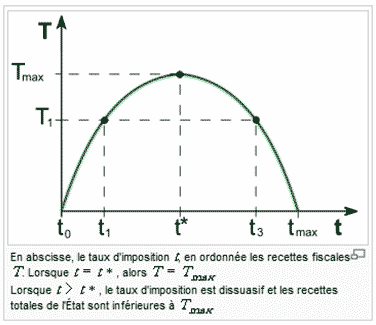On pense, par exemple, à la fameuse formule que l’on associe ordinairement aux travaux de l’économiste Arthur Laffer : «trop d’impôts tue l’impôt!». Selon lui, pour un montant donné de recettes fiscales, il existe deux taux d’imposition possibles (voir graphe 1) : un taux faible et un taux élevé – et il convient naturellement de choisir le plus faible. Dans le cas contraire, il en résulterait un découragement général des agents économiques – ceux-ci n’ayant plus de motivation pour travailler ou investir davantage en raison de la trop forte imposition du supplément de revenus procuré. Une telle situation aurait des répercussions négatives sur la productivité et la croissance et, par-là même, affecterait à long terme le niveau des recettes de l’Etat.
