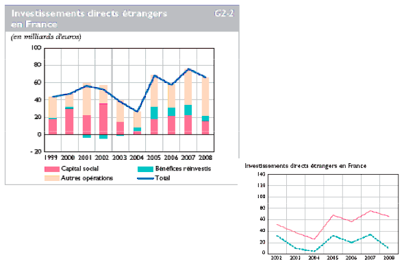 Les flux d’investissement directs entre la France et le reste du monde sont recensés dans la balance des paiements, sous la rubrique "Investissements directs". Ils recouvrent les IDE des entreprises françaises à l'étranger ("Investissements directs français à l'étranger") et les IDE des entreprises étrangères en France ("Investissements directs étrangers en France"). Ce sont naturellement les seconds qui témoignent de l’attractivité de notre territoire pour les investisseurs étrangers. Sous ce seul rapport, le bilan de la France apparaît particulièrement positif puisqu’elle reste la première destination des IDE en Europe et la seconde dans le monde après les Etats-Unis. Selon l’Agence française pour les investissements internationaux (AFII) et les agences régionales de développement (ARD), la France aurait ainsi enregistré 639 décisions d’investissement étranger créateur d’emplois en 2009.