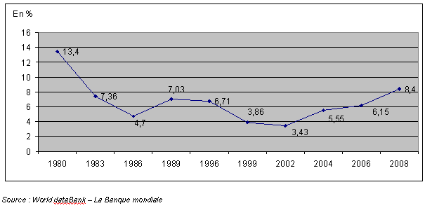 Ainsi, on peut supposer que la période de forte désinflation du début des années 2000 est définitivement terminée et n’aura été en fin de compte qu’une parenthèse. Le retour à un certain niveau d’inflation semble marquer un « retour à la normale », au trend, dans le sens où la croissance économique est toujours accompagnée d’un certain degré d’inflation. L’érosion du pouvoir d’achat qui en résulte constitue la contrepartie d’un développement accéléré des PVD.