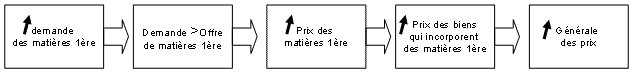 Par un effet « domino », cette hausse des prix des matières premières se répercute sur les coûts de production des marchandises industrialisées, donc sur leurs prix et, par conséquent, sur le niveau général des prix. Ce phénomène de « contagion » a déjà pu être observé lors des crises pétrolières de 1973-1974 et 1979.